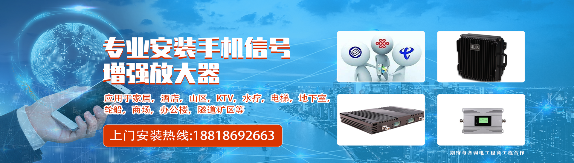 ? ? ? ? 公司擁有一批射頻微波安裝師和設計領域的人員、可提供現(xiàn)場勘察、方案設計、工程預算、設備安裝、開通調(diào)試、網(wǎng)絡優(yōu)化、設備售后維護等一系列技術(shù)服務。因而造就了本公司的工程各領域優(yōu)勢。目前公司移動通信網(wǎng)絡覆蓋產(chǎn)品品種齊全、涵蓋了2G、3G、4G、5G。GSM、CDMA、DCS、PCS、WCDMA、FDD-LTE的各種選帶直放站、光纖直放站、數(shù)字選帶直放站、多制式數(shù)字光纖分布系統(tǒng)、特殊場所信號屏蔽系統(tǒng)等等。